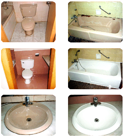 a、對(duì)浴盆、臉盆、坐廁、墻磚、地磚等表面脫瓷裂縫等破損處快速修補(bǔ)及整體翻新;